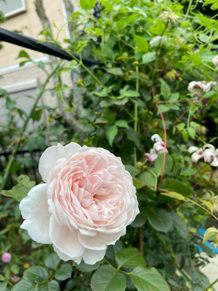 春に届いた苗を2つ咲かせてしまいましたが、後はシュートをグーンと伸ばしています🌿オベリスクは準備出来た👍