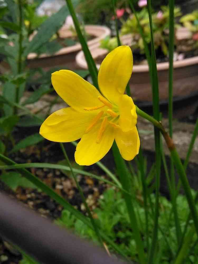 ゼフィランサスはこの子の回りに沢山あるけど色が違います。