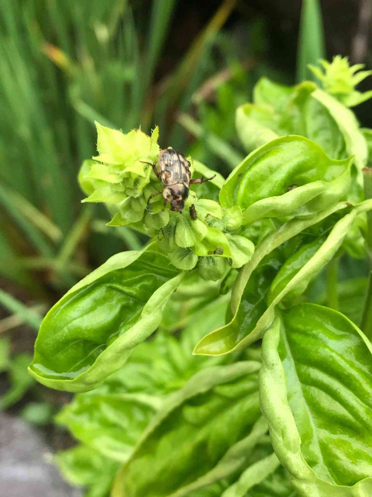 サラダ🥗にと思ってバジル摘みに行ったら、小さなお客さんが遊びに来てた〜雨上がりは気持ち良いもんね😊♬