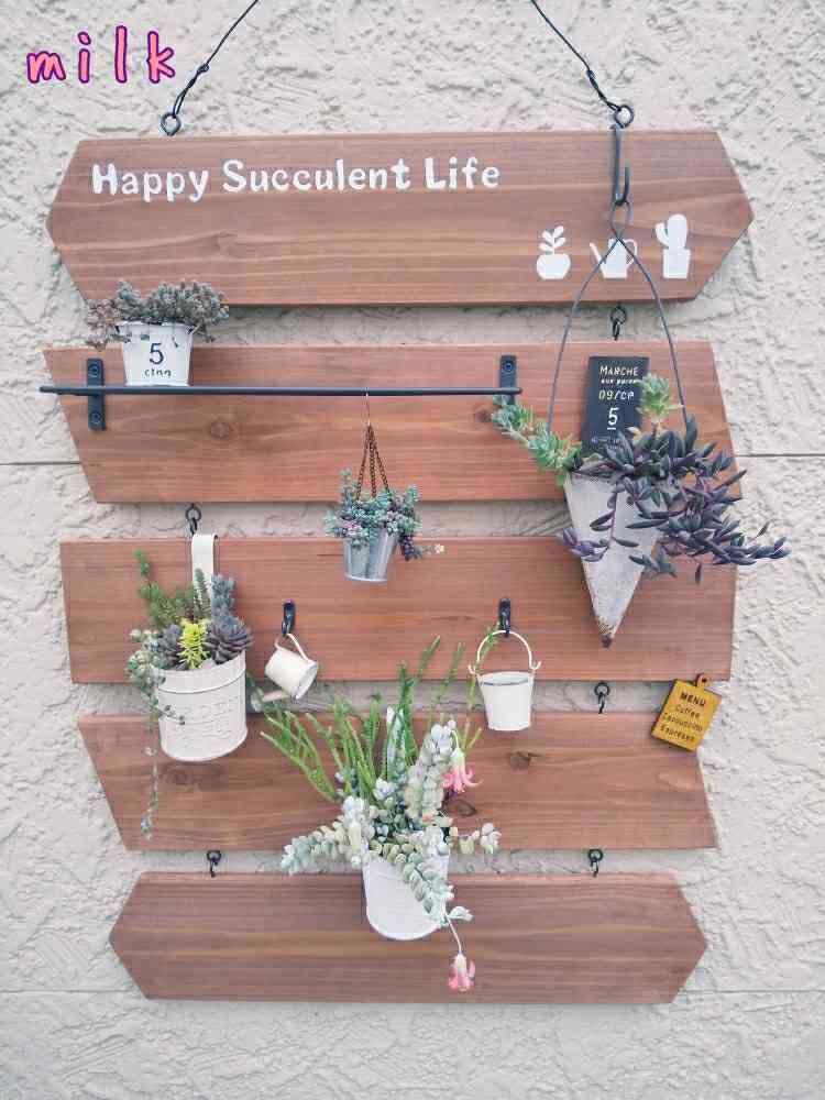 手作りディスプレイボードですね☺️💕可愛らしいくて素敵です✨多肉ちゃん達を眺める楽しさも伝わります🥰