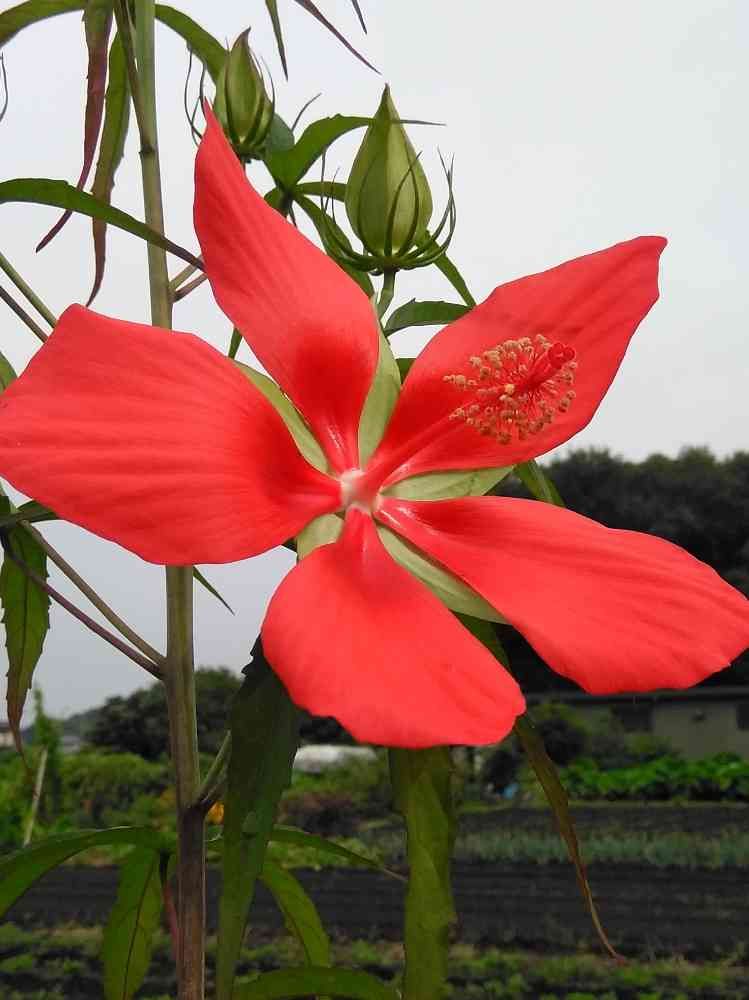 雨もなんのその、いっぱいに咲き誇っている、モミジバ葵。