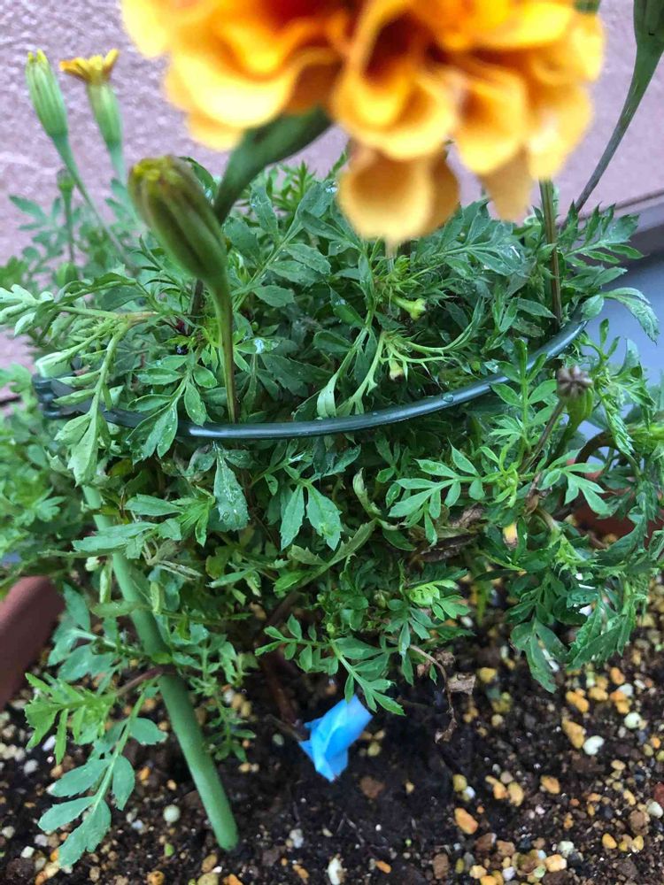 ナメクジ攻撃から なんとか逃れたマリーゴールドが根元からポッキリ:(;゙゚'ω゚')アワワワワ