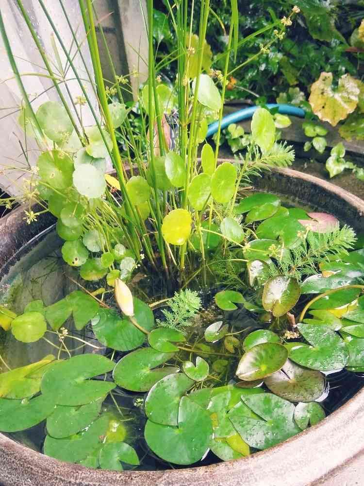 メダカの子供がいつの間にか、泳いでいます。水草に卵がついて来たらしい。