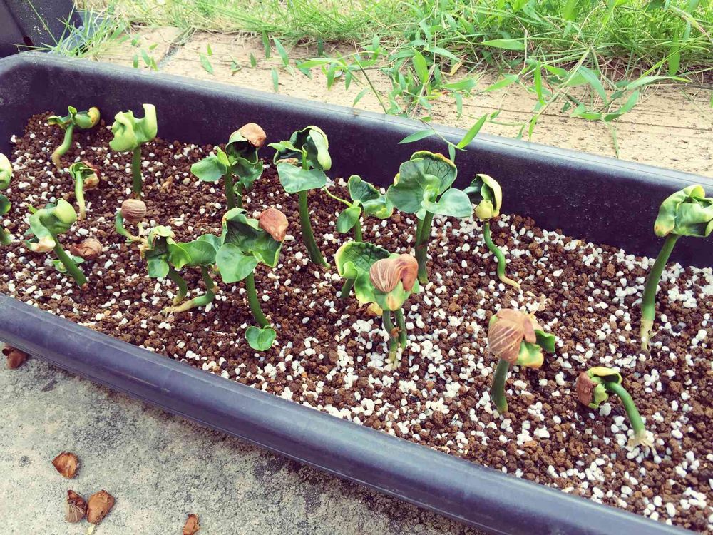 小さな庭,パキラ発芽,観葉植物の投稿画像
