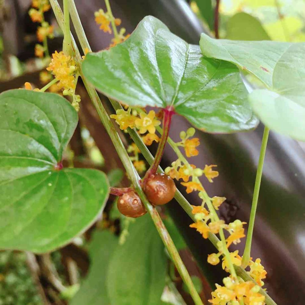 もう何年も玄関の階段の同じ場所から春になると蔓が伸びて来て夏になると3〜5mm程の小さなお花咲かせます!カエデドコロさん🎶