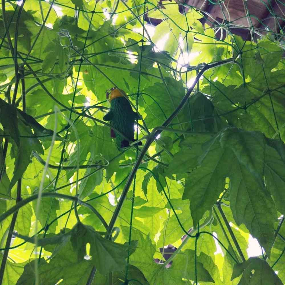 今年は遅くに苗を植えたので心配していましたが、もりもり立派な棚になりました。