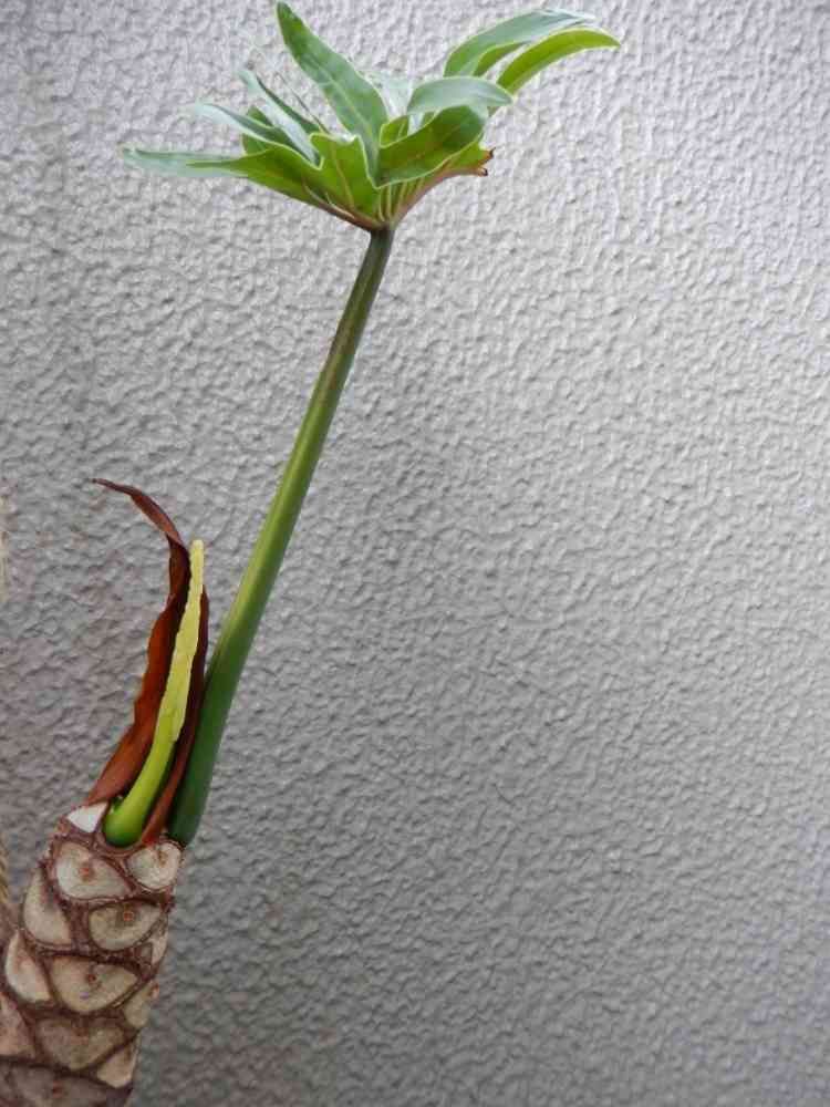 2011年に工事業者さんから頂いたクッカバラです.調子よく育っていましたが,根があまりに長くなったので鉢に収まるように切りました.途端に成長が止まり,葉も一枚を残すのみになりました.幸いにも,生きていてくれたようです.新しい葉が動き出しました.