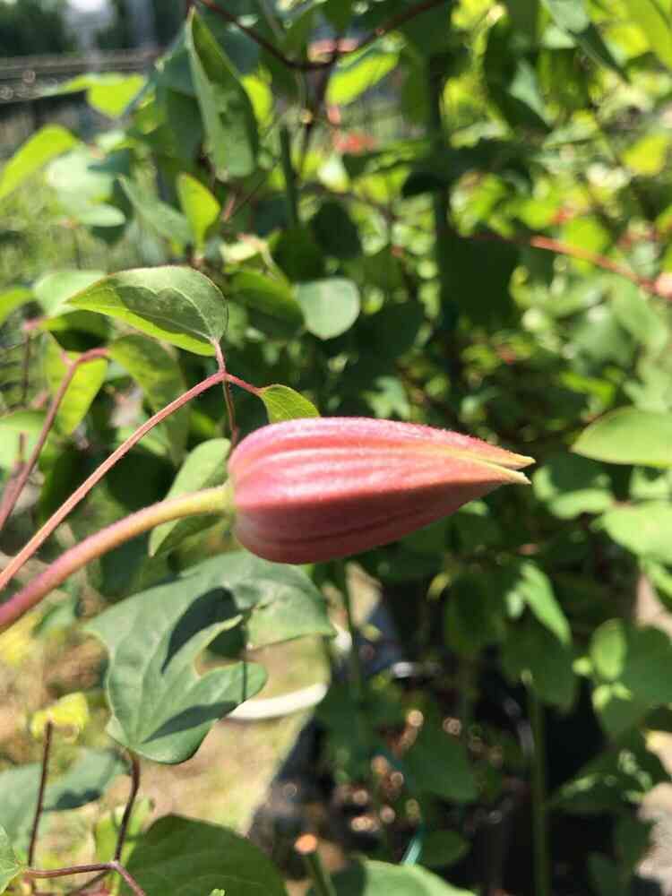 プリンセスダイアナ。今にもおしゃべり始めそうな形のつぼみ。新枝咲きである程度咲いたら地際まで切り詰められるタイプ。つぼみはこれが最後のよう。このお花終わったら切っていいのかしら❓