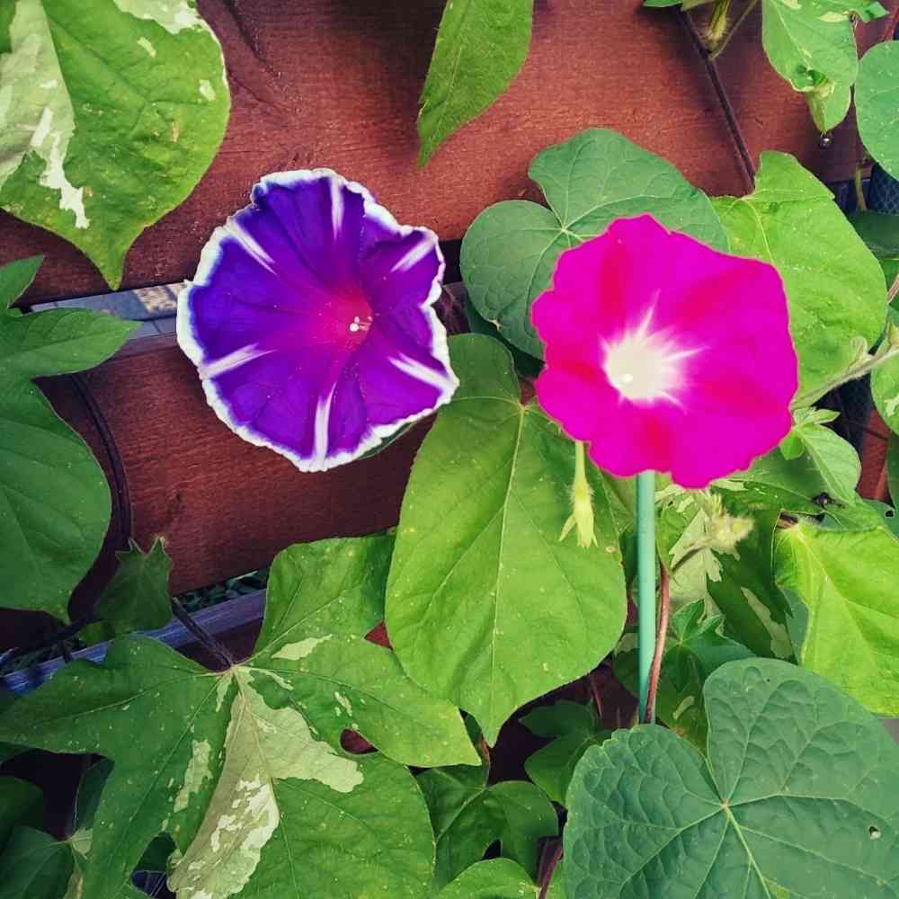 左画のアサガオ珍しくて綺麗な色ですネ。