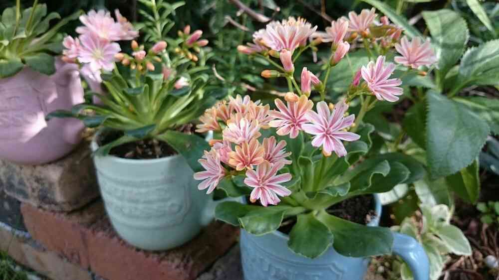 ブルーのマグカップのレウィシア、満開です(*^-^*)