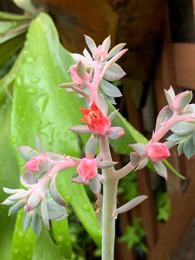 なんだか雨の中みんなで手を広げてダンスしてるみたい〜茎のピンクもかわゆいね( •ॢ◡-ॢ)-♡