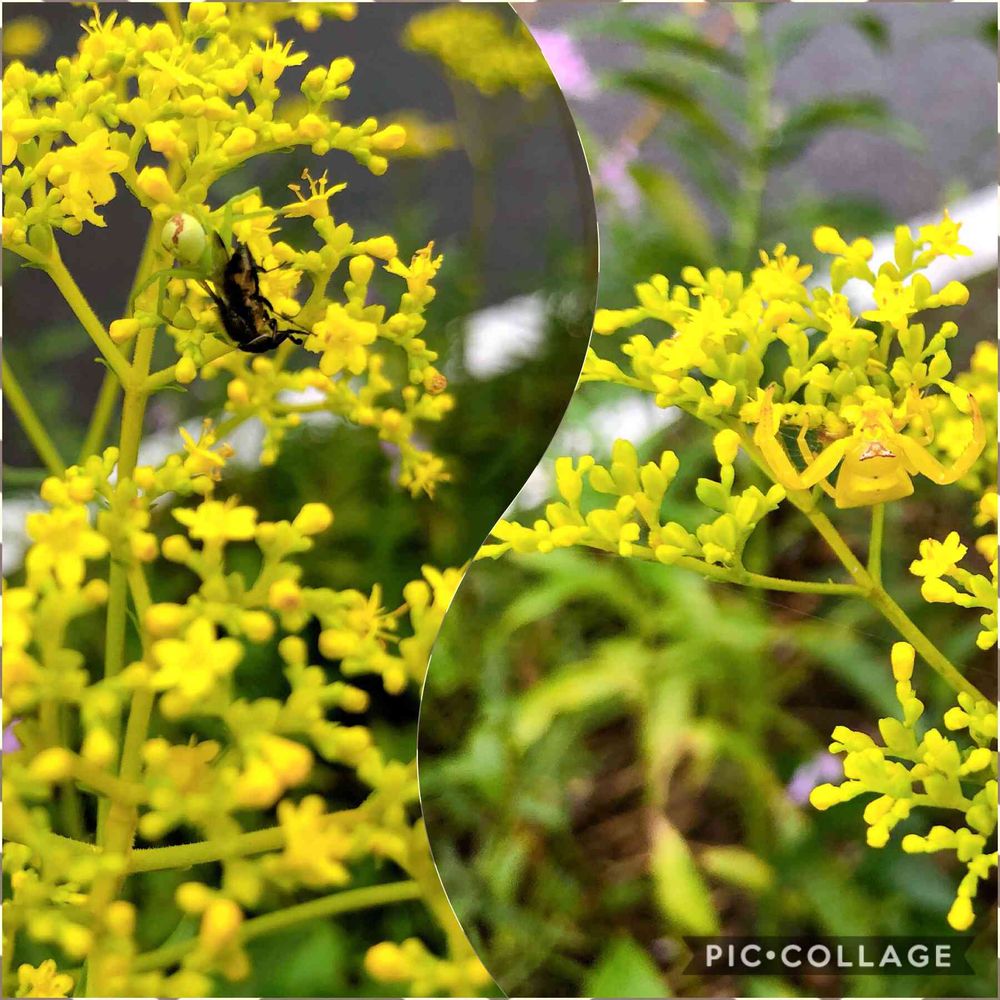 ⬅️よく見ないとわからなかったけど、黄緑色の玉が、花にとまって近づいてきた虫を背負い投げ⁉️…☠️
