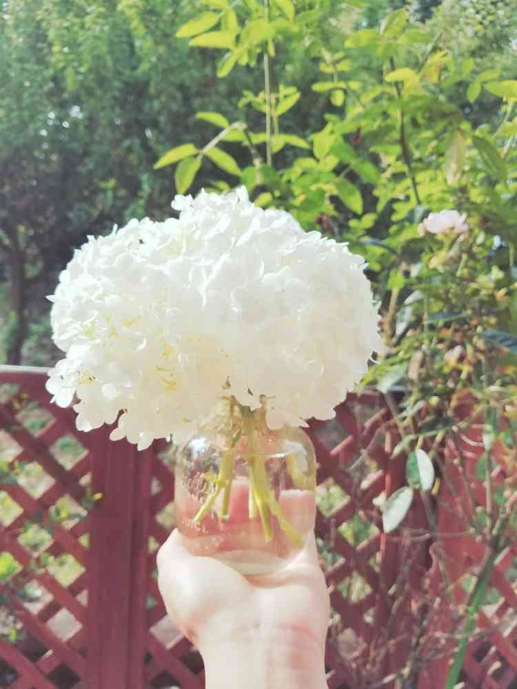 庭のアナベルはドライフラワーにしたいのだけど、フワフワしたかわいさに負け、数本は水差しにしてお部屋で楽しんでいます。