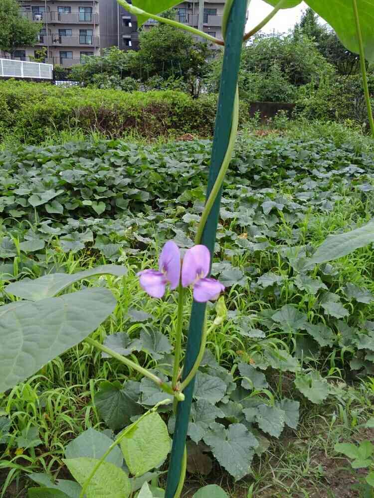 胡瓜の畑を紹介したくて、畑に行ったらインゲンに花が咲いていました😊