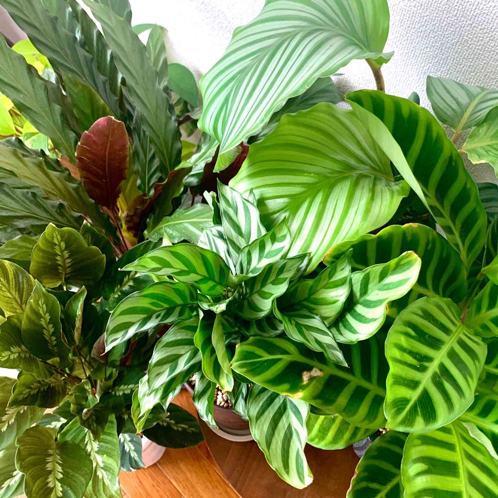 観葉植物も部屋の中にと 癒されて カラテアも集まって来ました。葉っぱの模様にトリコになり休眠運動にも楽しめます🤎 カラテア素敵ですよ❤︎是非ぜひ❣️