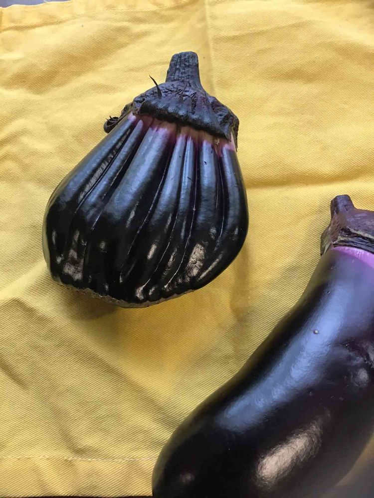 田舎にもかぼちゃっぽい茄子🍆がありますが、やはりこんな形です。