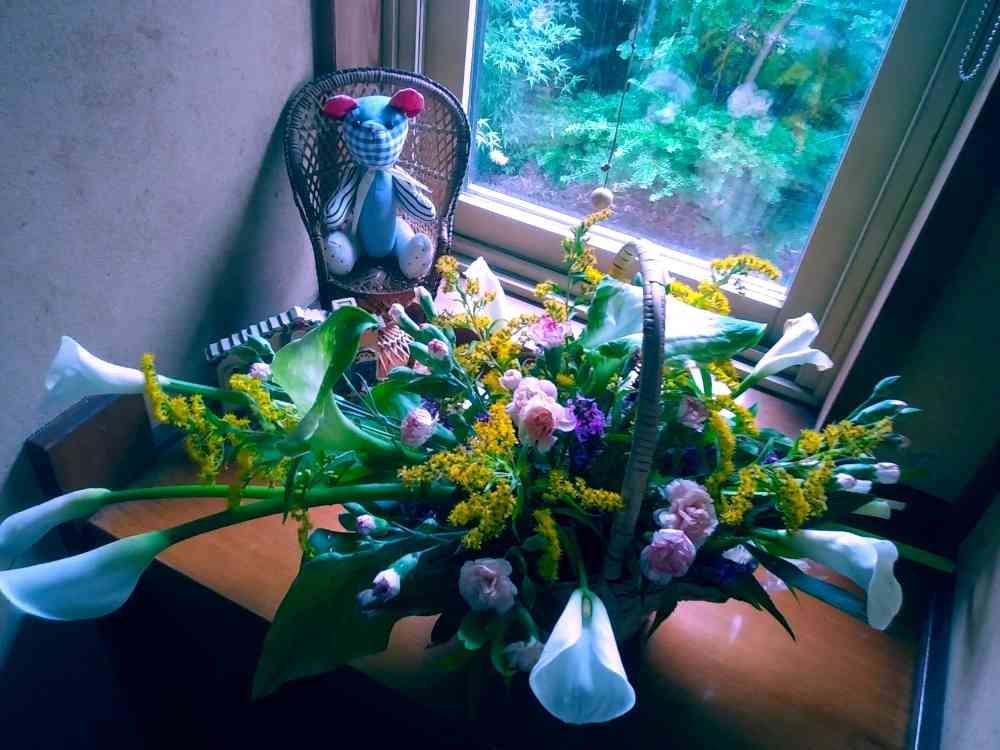 いつもの出窓一杯になるほど、大きなアレンジになってしまいました~😅