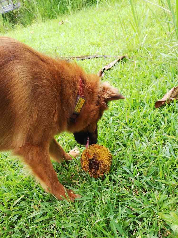 愛犬がボールで遊んでる・・・・と思ったらパンの実でした。