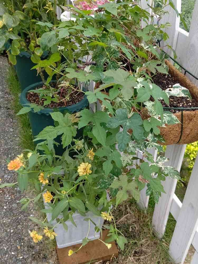 斑入りノブドウとジニア 寄せ植えしてたけど 少し元気がなかったので 別居しました😅