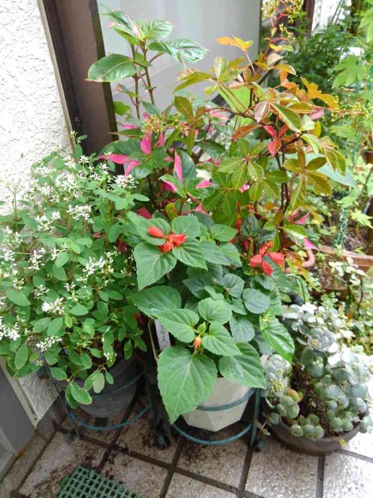 イレシネは、昨年頂いた挿し芽、ミセバヤとヘンリー蔦も以前の挿し芽、ヒゴロモソウは今年の苗、