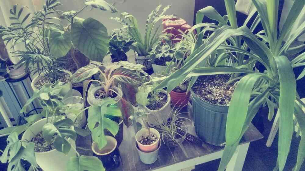 明日の九州地方は僕が誕生して以来最も寒い1日になるかもしれないとのことで、日頃は窓辺で過ごしている植物たちをとりあえずテーブルの上に避難させてみた。さて、僕はどこで食事を摂れば良いのか。