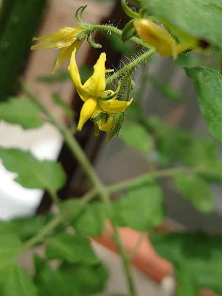 父がプランターで育ててるトマトの花