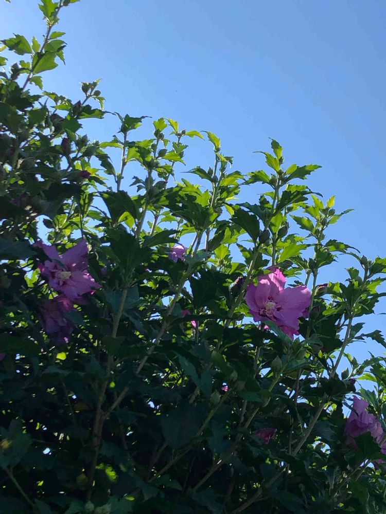 ムクゲ(木槿)…木本、葉が花より小さい。卵形で周りに鋸歯。