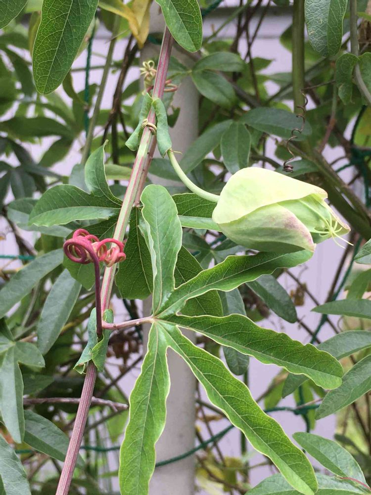 耐寒性トケイソウの蕾とつると葉