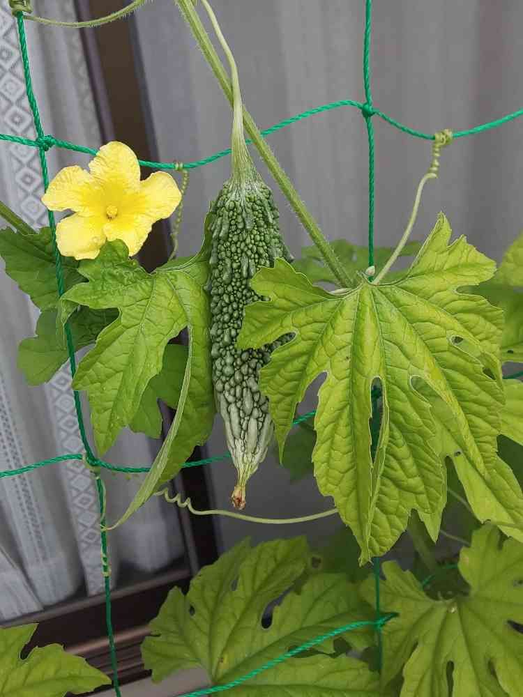 パープルさんの広い庭,ゴーヤ一番果,グリーンカーテンの投稿画像