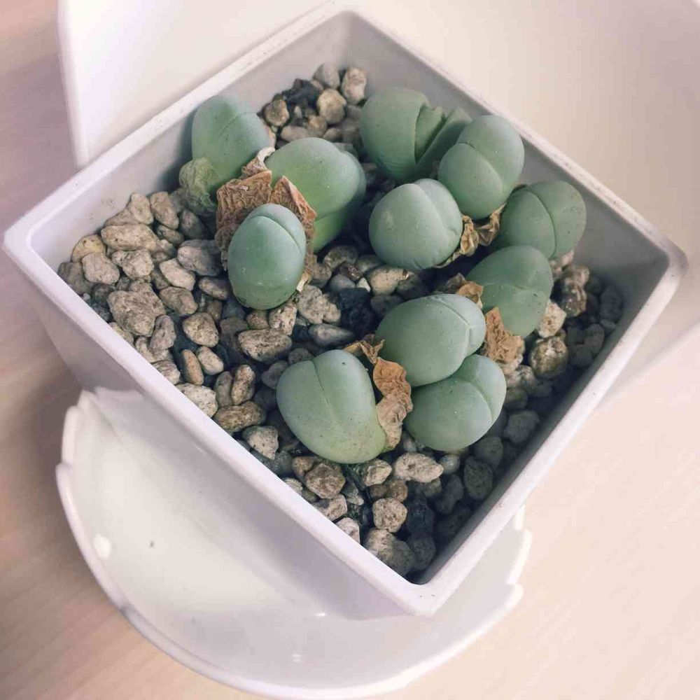 腰水中の銀光玉さん。土の粒が大きいので水はけ良すぎるのか、水をあげてもずっとシワシワが取れない子がいるんです。もう少し粒の小さな土に変えようかな…🤔相変わらず銀光玉さんの育て方が分かりません😅