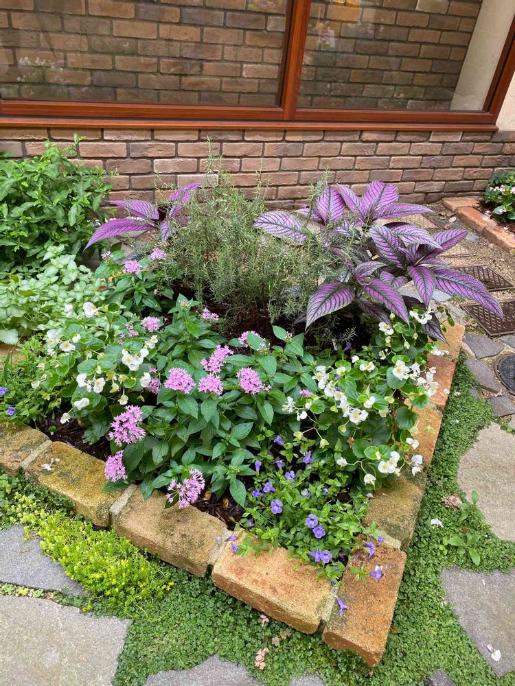 今日お出かけした、商店街の一角の花壇が素敵でした。