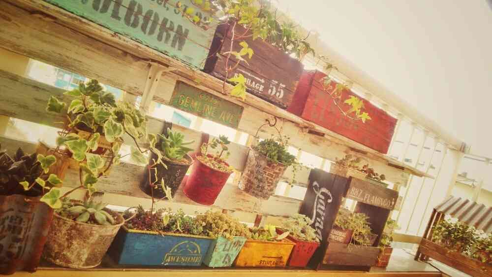 ベランダの柵の間から落ちないように、すのこで落下防止&植物が置けたり出来るように簡単に作ったものだよ🔨