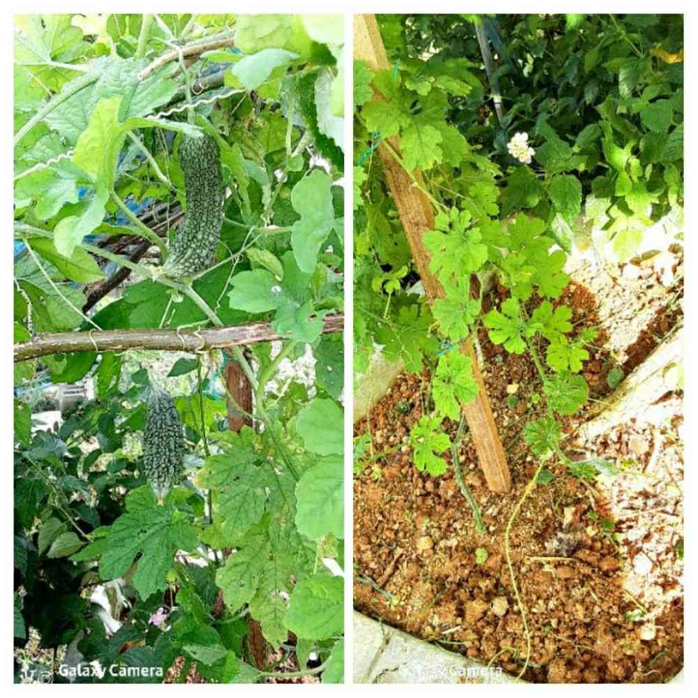 パッションフルーツの根元に肥料がわりとして野菜くずを捨ててたらゴーヤーが育ちました‼️