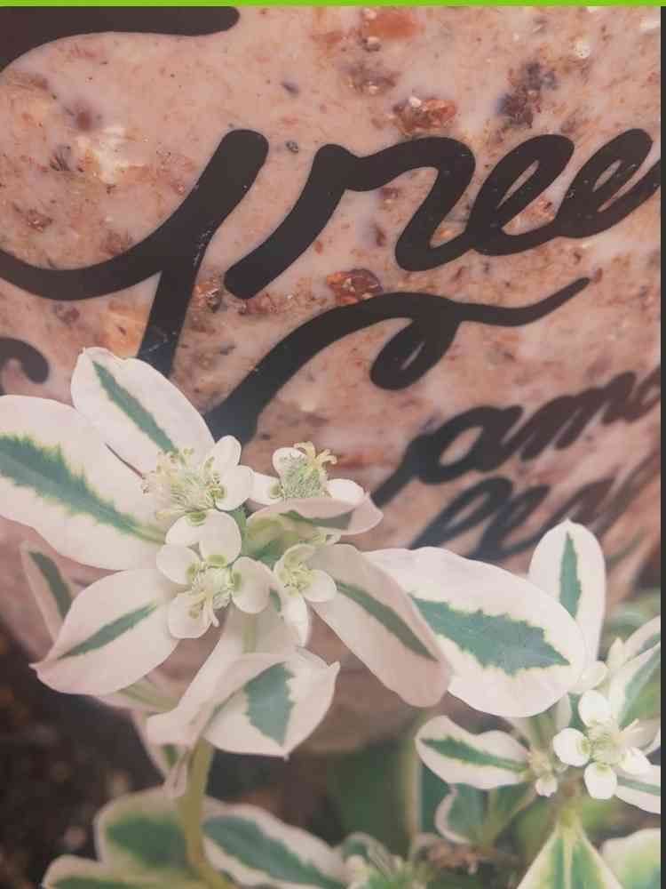 白と緑の綺麗な植物ですねえ、何という名前かしらこれ? ☔に負けずサバイバルしてほしいですね、😉