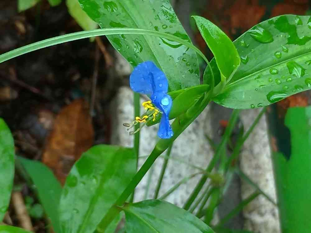 緑道に背を向け雨の中ひっそりと咲いていたツユクサくん💙