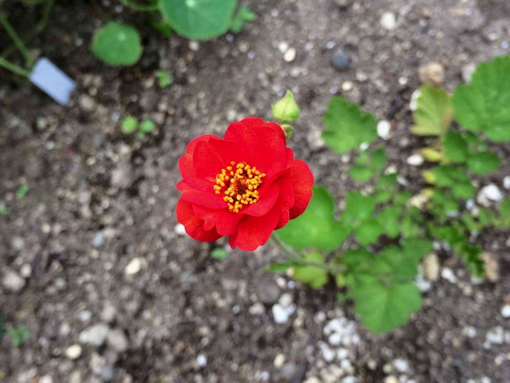 写真は植えたばかりの宿根草で、もう咲いたゲウム ミセスブラッドショウです。