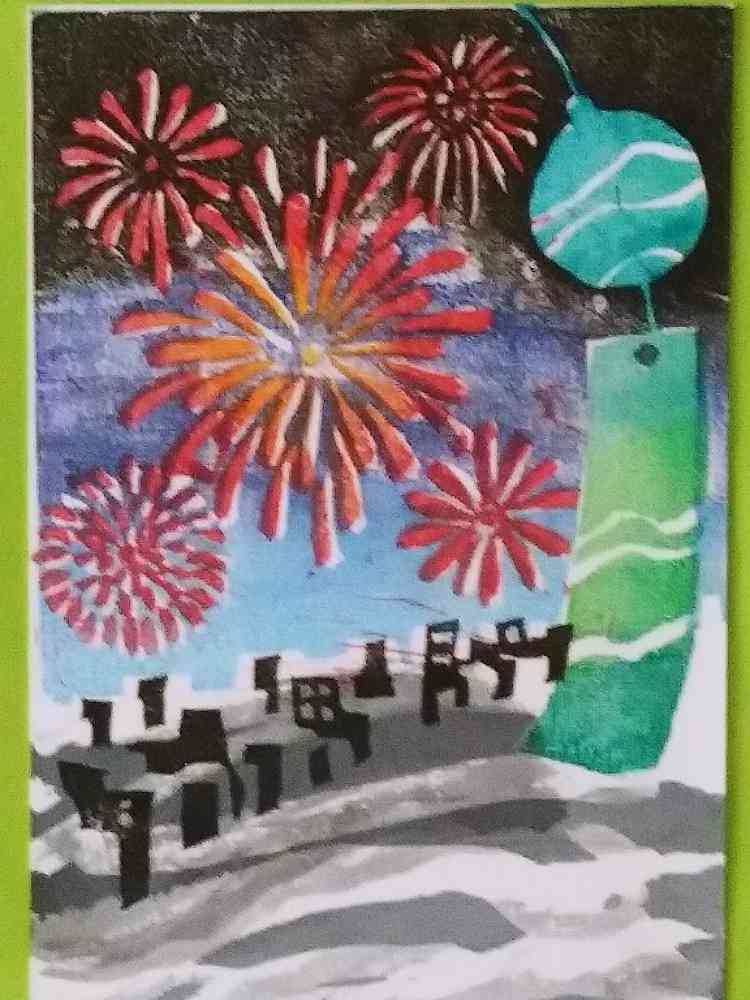 花火5個と風鈴🎐、街は後で押します。土台と上手く重ねないとダメなんです。