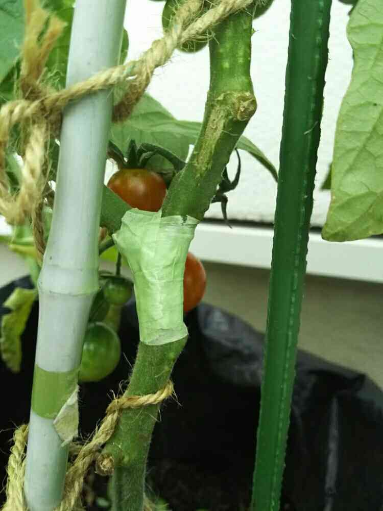 子どもの育ててるトマトなので何とか助けてあげたいのです☺早速添え木してみます❗