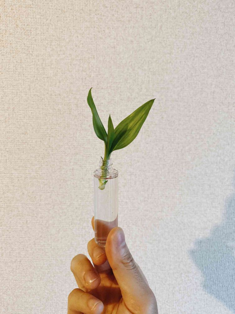 ミリオンバンブー挿し木。無印で買った、トラベル用の小分けボトル(70円)がピッタリ!
