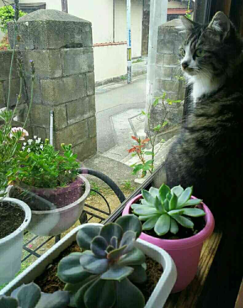 見返り美猫、モモちゃん😃梅雨入りしましたね、東北も、、