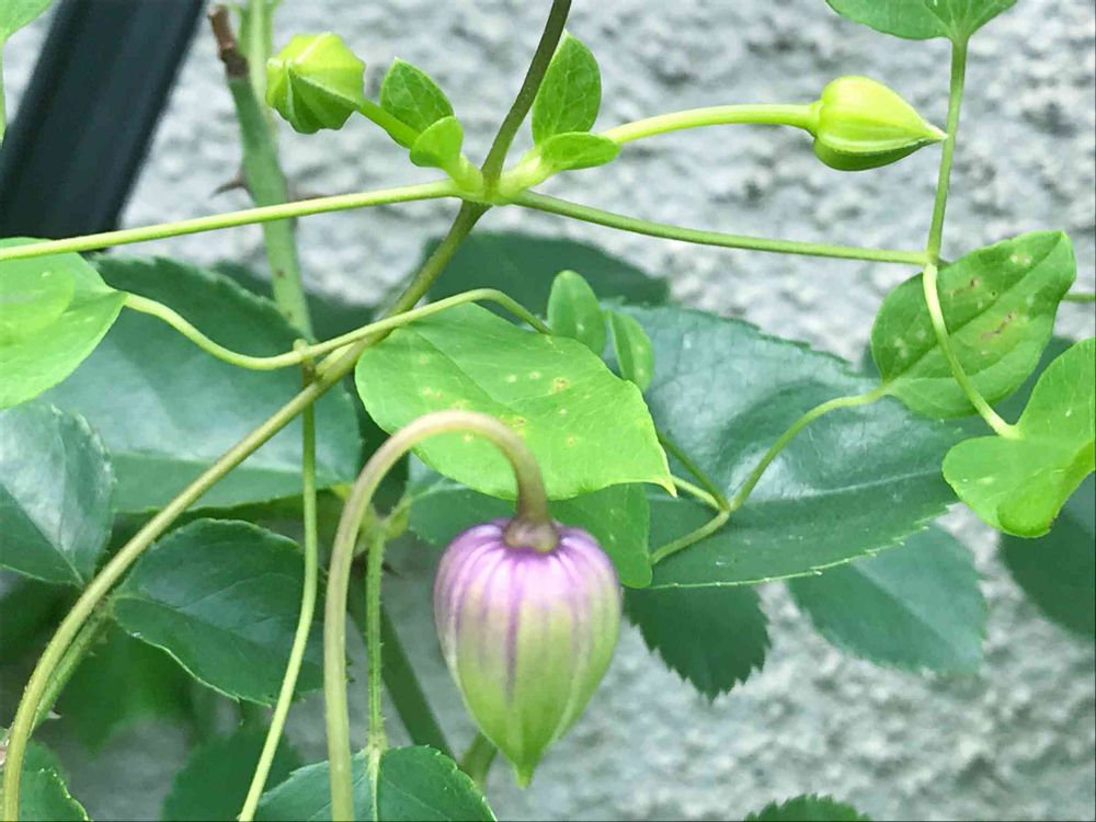 暑さに負けず壺型クレマチスが頑張ってくれてます👍壺型クレマチスも、ロウグチ以外の壺型は小さいので、どこにパワー秘めてるのかな💪
