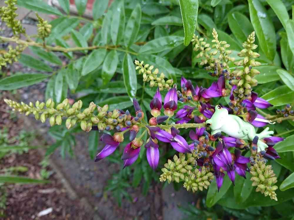 ムラサキノボリフジ(別名サッコウフジ)の名の通り、本当は上に向かって咲くケド、横向きに💦