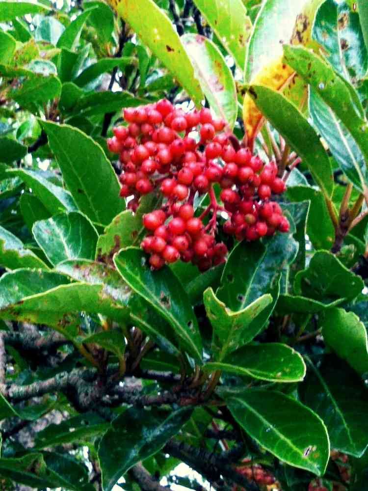 小合溜の前に、サンゴジュの木があり、実が赤く成っていました。