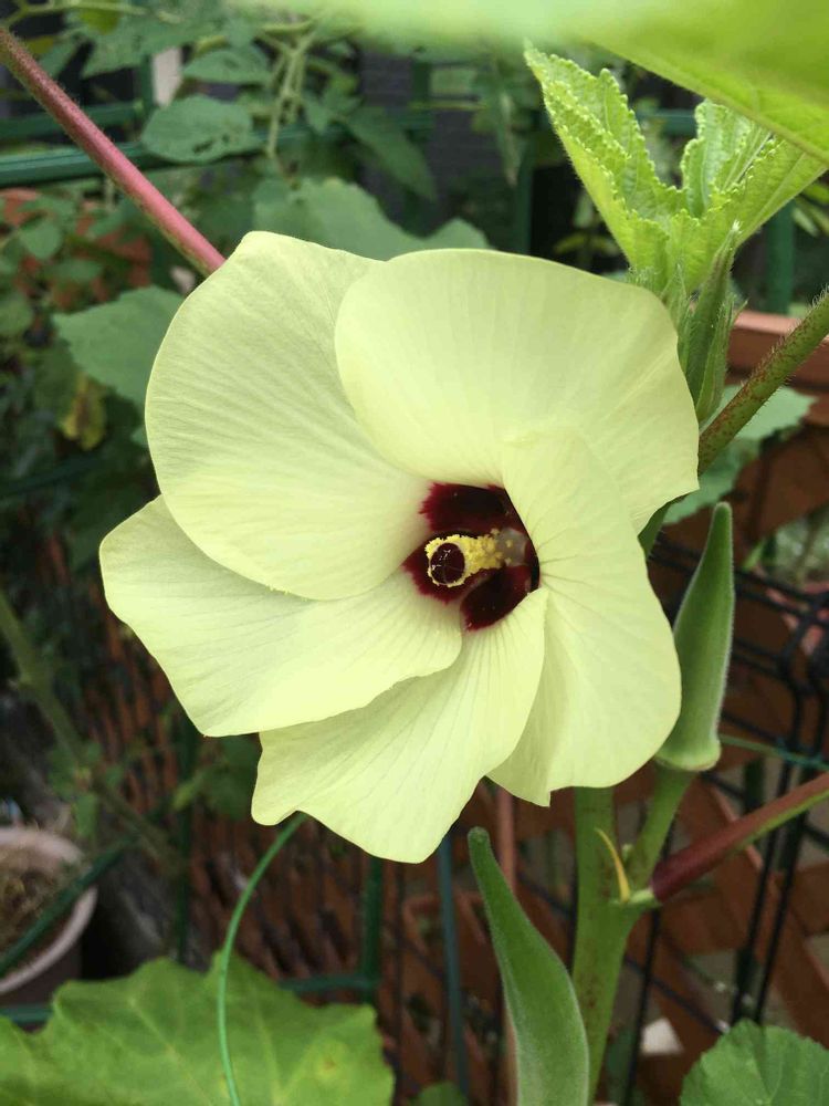 オクラの花は野菜の花とは思えないほど綺麗ですよね〜😊💕👍
