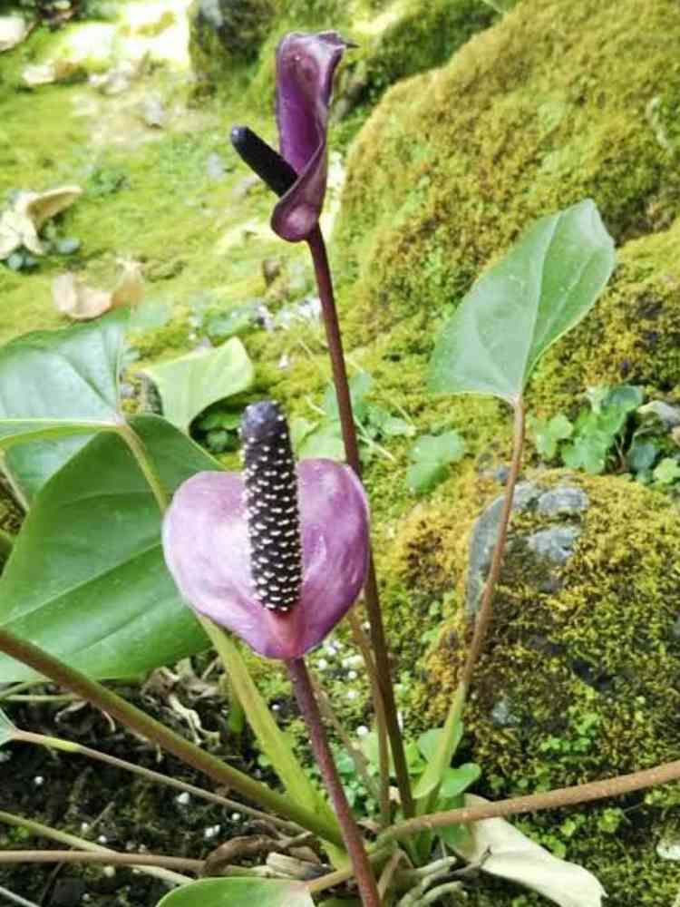 植物園に咲いていた、紫色が美しいアンスリウムのお花です🤗