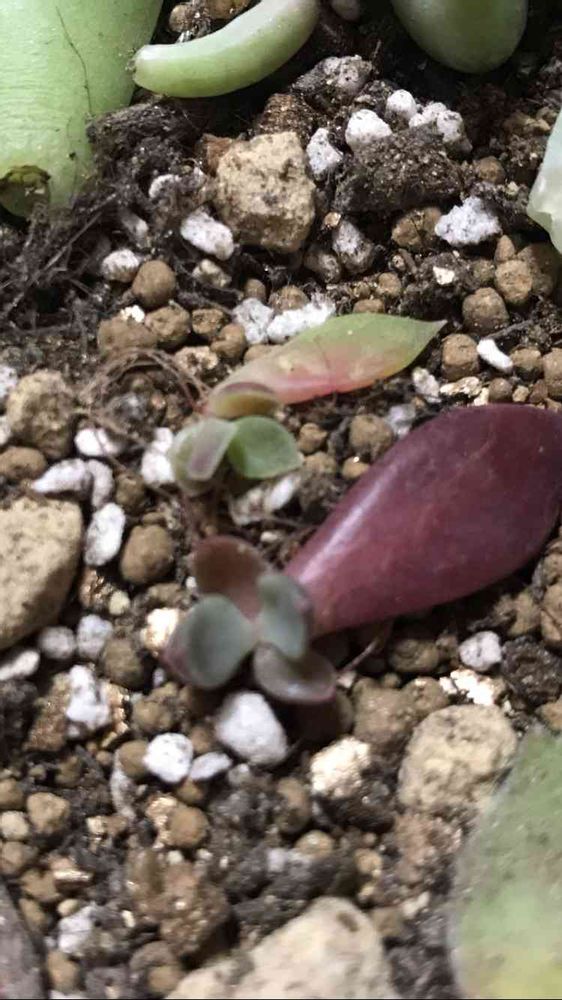 私は多肉初心者なので、教えてもらったことの受け売りですが、葉挿しの赤ちゃんは干からびやすいので、根っこに土を被せてあげて、霧吹きでこまめにお水あげてます😄
