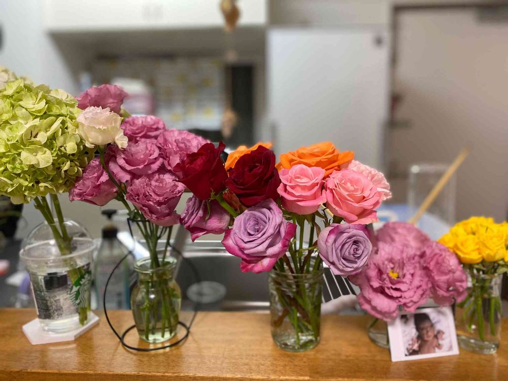 切り花沢山いただいたので生けたら、お花屋さんみたいになって、とっても幸せ〜💕