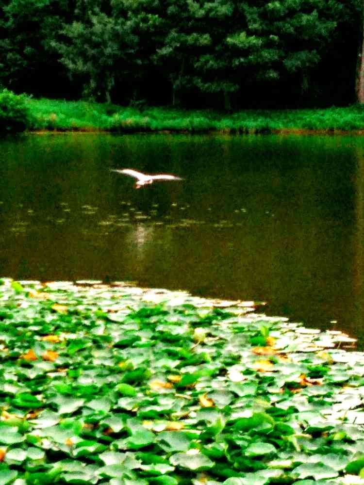 アオサギ君が向こう岸に、飛び立ってしまいました。