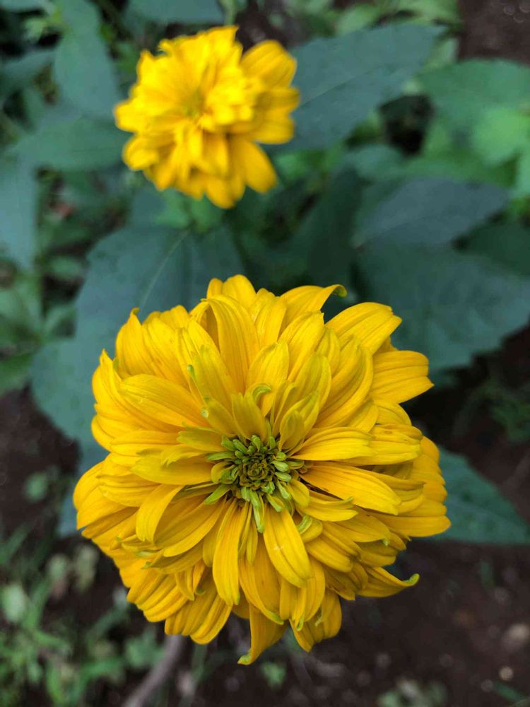 こぼれ種で庭のあちこちに咲いてくれるヘリオプシス。昨年、八重咲きが一株現れました。近くに八重のルドベキアがあったので、交配したのかもしれません。不思議です。