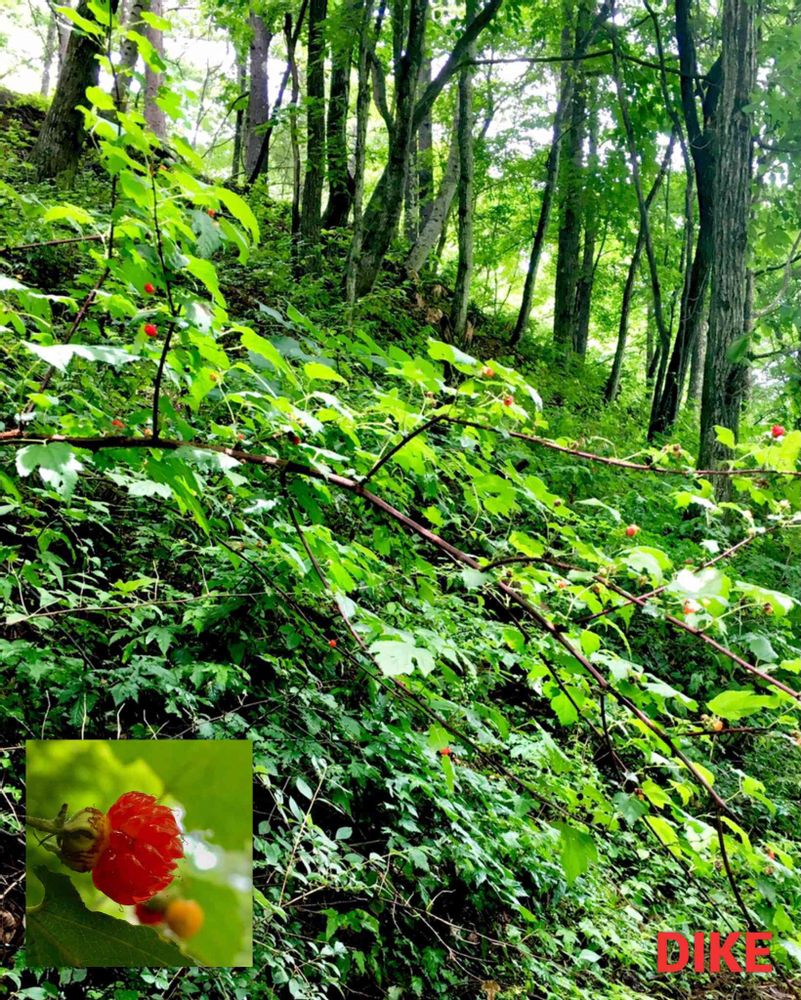 熊苺🍓、樹にボリュームがありますし、トゲトゲも凄いです、実は結構美味しく甘いし沢山成るので、ジャムを作った思い出があります。傷だらけにはなりましたが😅。